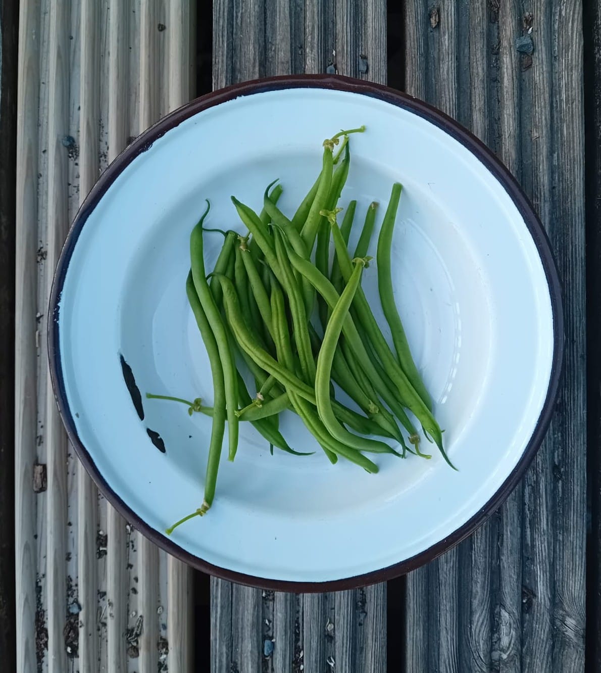 French beans like warmth, sun and rich soil. Although they are dwarf beans they still need support, bamboo or hazel tripods work well. Keep plants well watered. Keep picking to promote more flowers and beans.