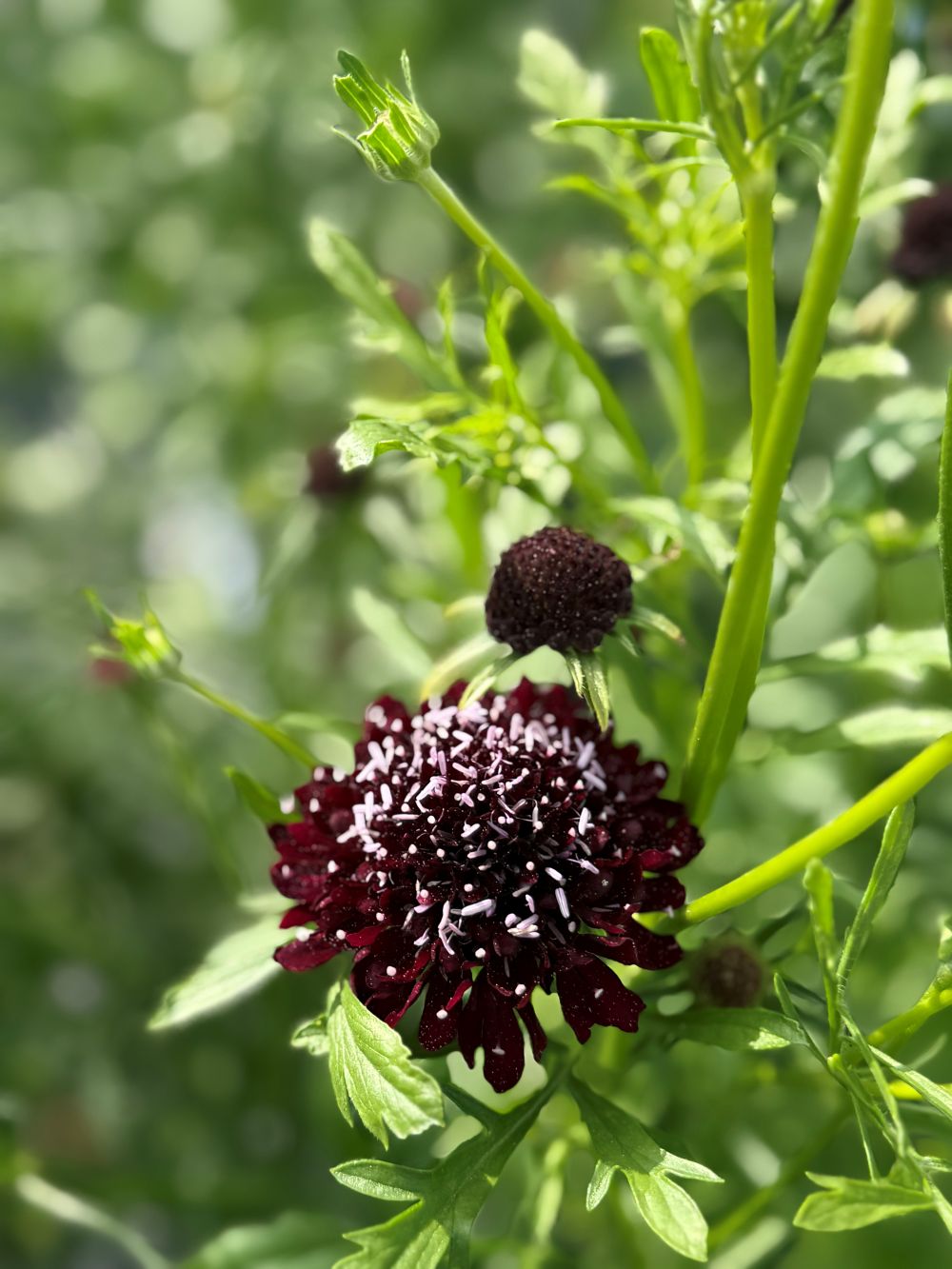 A dark and velvet-like flower head with long stems. Making it perfect as a cut flower and in bouquets. Also known as pincushion flower, it will bloom from late September until the first frost.